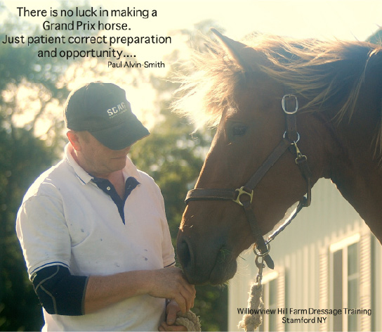 Shortly after moving to Pawling, Willowview Hill Farm began a Warmblood and Iberian breeding operation. Paul would start the young home-produced horses from scratch. When Elite auction horses arrived home from Vechta and Verden, he took each individual and worked diligently to assure they reached their potential.